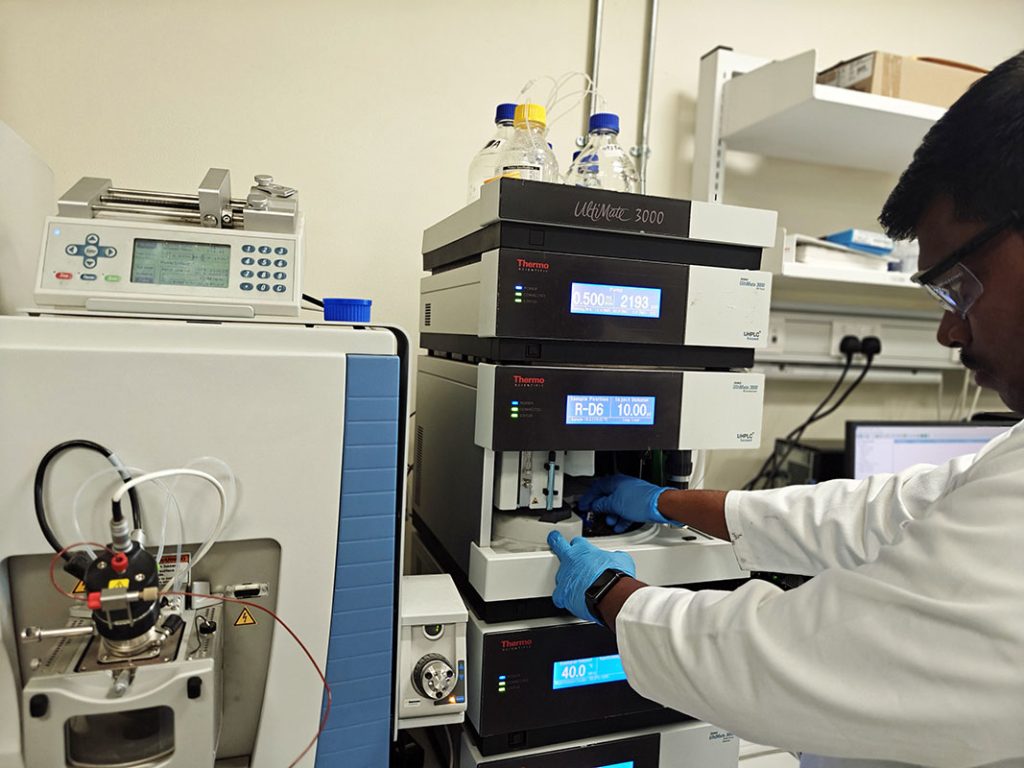 Postdoctoral researcher, Barathi Kannan Kalian, has fermented date seeds and pomace with selected herbs to create a feed additive that reduces E. coli by 99%. “We tested our formulation in the UAE’s hot climate, where commercial feed often shows fungal contamination,” he explains. “Ours contained no detectable mycotoxins. It offers antibacterial and antifungal protection, improving poultry health and productivity.”