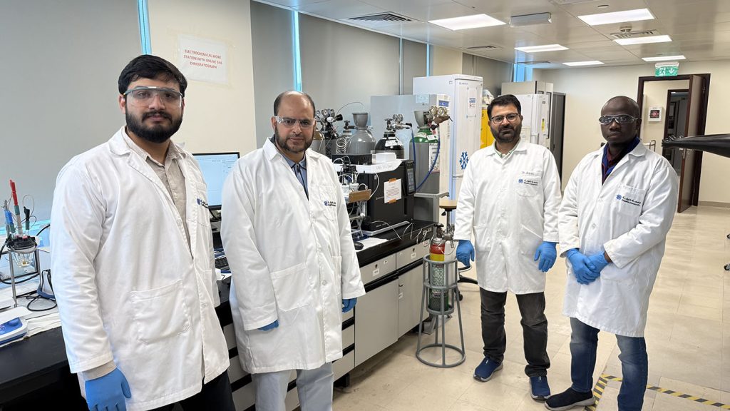 The team’s aspirations didn’t go unnoticed, and caught the attention of innovation accelerator ASPIRE, based in Abu Dhabi, which supports researchers to turn their ideas into reality. In 2021, Faisal Al Marzooqi, Deputy Director of the Center for Membranes and Advanced Water Technologies (CMAT) and Associate Professor at the Chemical & Petroleum Engineering Department at KU, and his colleagues received a prestigious research grant from the ASPIRE Award for Research Excellence (AARE), giving their work momentum to push boundaries in carbon conversion.